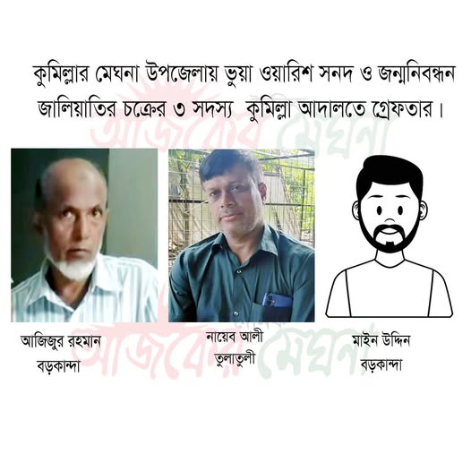 কুমিল্লা মেঘনার প্রতারণার এই মহাসিন্ডিকেটের মূল হোতারা এখন জেল হাজতে। প্রতারণার এই মহাসিন্ডিকেটের মূল হোতা বড়কান্দা গ্রামের আজিজ,মাইন উদ্দিন, তুলাতলী গ্রামের নায়েব আলী কুমিল্লা আদালতে আত্মসমর্পণ করে, জামিন চাইতে গেলে বিজ্ঞ আমলী আদালতের মাননীয় বিচারক জনাব কামাল হোসেন তাদের জামিন আবেদন না-মন্জুরক্রমে জেল হাজতে প্রেরণের নির্দেশ দেন৷