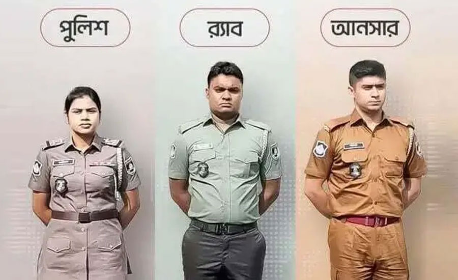 পুলিশের পোশাক নির্ধারণ হয়েছে লোহার (আয়রন) রঙের। র্যাবের পোশাক জলপাই (অলিভ) রঙের। আর আনসারের পোশাক সোনালি গমের (গোল্ডেন হুইট) রঙের। আপাতত মেট্রোপলিটন পুলিশ সদস্যরা পোশাক পাবেন। পর্যায়ক্রমে সারাদেশের জেলা পুলিশ সদস্যদের নতুন পোশাক দেওয়া হবে।