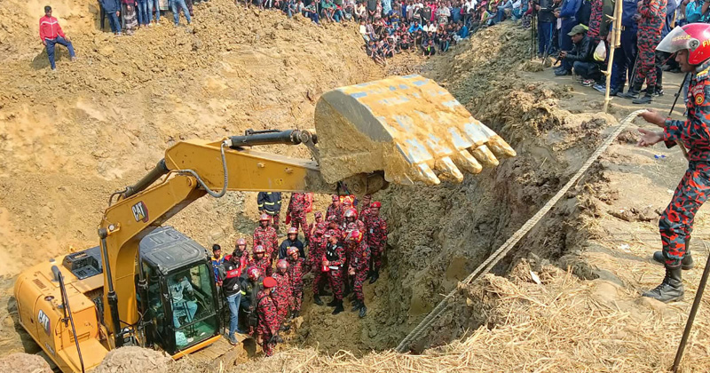 বৃহস্পতিবার (১১ ডিসেম্বর) বিকেল ৩টায় ফায়ার সার্ভিসের পক্ষ থেকে জানানো হয়, এখন বড় পরিসরে মাটি খোঁড়া হচ্ছে। শিশুটি উদ্ধারে আরও সময় লাগতে পারে।