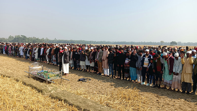জানাজার মাঠে মানুষের ঢল নামে সকালেই। গ্রামের বৃদ্ধ থেকে শুরু করে স্কুলপড়ুয়া ছেলেরা সবার চোখ ভিজে। সাজিদের ছোট্ট দেহটি যখন সাদা কাপড়ে মোড়ানো অবস্থায় আনা হলো, তখন কান্নার রোল পড়ে গেল চারপাশে। তার মা বারবার ছুটে আসতে চাইছিলেন-করছেন আহাজারি।