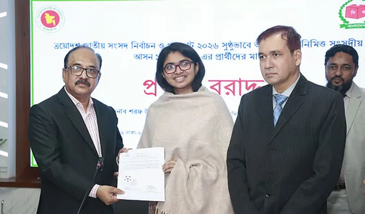 বুধবার ঢাকা বিভাগীয় কমিশনারের কার্যালয়ে প্রতীক বরাদ্দ পান তাসনিম জারা।