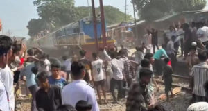 (ভিডিও)ভৈরব জেলার দাবিতে রেলপথ অবরোধ করে ট্রেনে বৃষ্টির মতো পাথর নিক্ষেপ