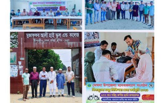 মেঘনায় “মেঘনা উপজেলা মানবকল্যাণ সংগঠনের” আয়োজনে বিনামূল্যে চক্ষু চিকিৎসা সেবা সফলভাবে সম্পন্ন