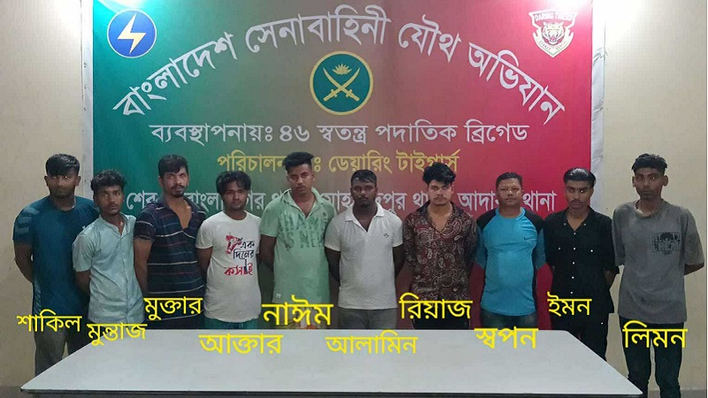 আটক ব্যক্তিরা হলেন—গ্রুপের অন্যতম নেতা নায়েম (২২), শপন (৩০), আল আমিন (২২), শাকিল (২৫), মুনতাজ (২৫), মুক্তার (২৩), রিয়াজ (২১), ইমন (২০), লিমন (২০) ও আকতার (২০)।
