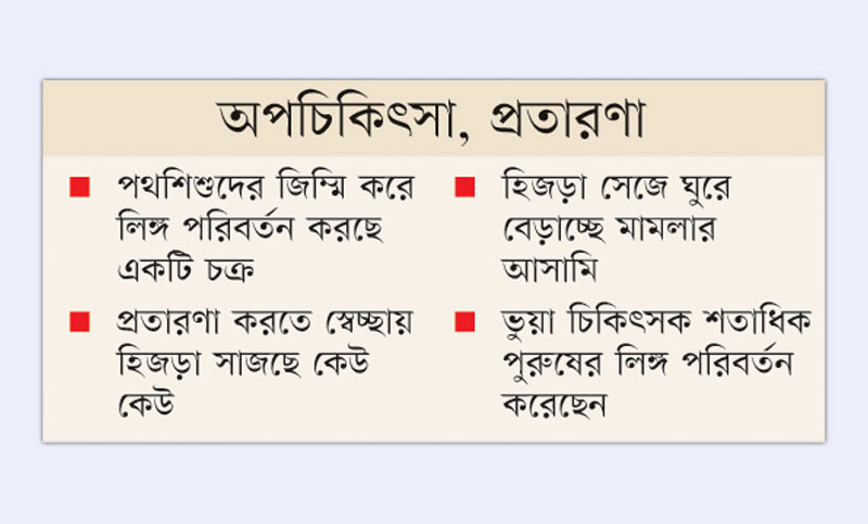 শিশুদের লিঙ্গ পরিবর্তনের বিষয়ে মানবাধিকারকর্মী ও লোকাল এডুকেশন অ্যান্ড ইকোনমিকের (লিডো) নির্বাহী পরিচালক ফরহাদ হোসেন কালের কণ্ঠকে বলেন, ‘সমাজে অনেক পথশিশু আছে, যাদের বয়স ১২ বছরের ঊর্ধ্বে। এদেরই কাউকে কাউকে প্রলোভন দেখিয়ে কোনো কোনো চক্র কৌশলে লিঙ্গ পরিবর্তন করে রাস্তায় নামিয়ে টাকা আয় করছে। সময় এসেছে, এই শিশুদের যেন আর ব্যবহার করতে না পারে সে উদ্যোগ নেওয়ার।