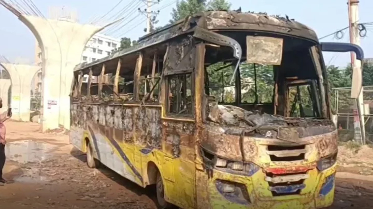 আগুনে পুড়ে যাওয়া আলিফ পরিবহন। ছবি- সংগৃহীত