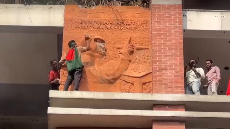 সামাজিক যোগাযোগমাধ্যমে ছড়িয়ে পড়া ভিডিওতে দেখা গেছে, বিক্ষুব্ধ জনতা জড়ো হয়ে সেখানে অবস্থান কর্মসূচি পালন করছেন। অনেককে আবার কার্যালয়ের দেয়ালে থাকা শেখ মুজিবুর রহমানের খোদাই করা গ্রাফিতি ভাঙতে দেখা গেছে।
