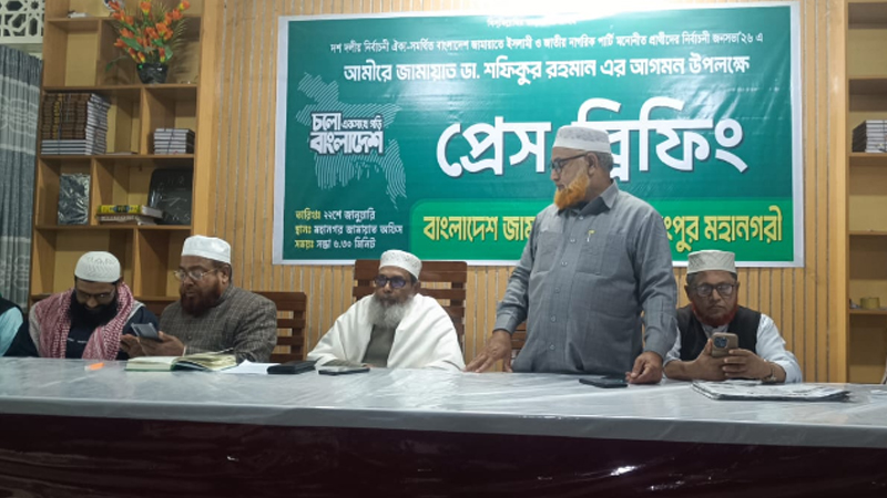 বৃহস্পতিবার (২২ জানুয়ারি) সন্ধ্যায় বাংলাদেশ জামায়াতে ইসলামির আমির ডা. শফিকুর রহমানের রংপুরে আগমন উপলক্ষে আয়োজিত সংবাদ সম্মেলনে এই দাবি জানিয়েছেন দলটির রংপুর ও দিনাজপুর অঞ্চলের সহকারী পরিচালক ও কেন্দ্রীয় কর্মপরিষদ সদস্য মাওলানা মমতাজ উদ্দিন।