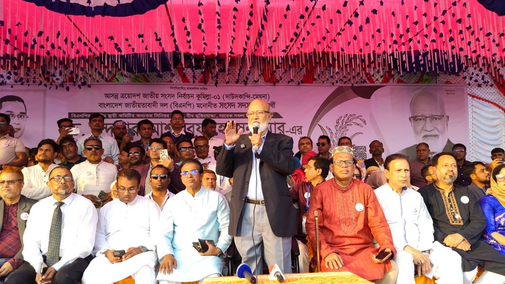 রবিবার (৮ ফেব্রুয়ারি) বিকেলে কুমিল্লার মেঘনা উপজেলা বিএনপি ও অঙ্গ সংগঠনের আয়োজনে মানিকারচর এল এল মডেল উচ্চ বিদ্যালয় মাঠে নির্বাচনী জনসভায় প্রধান অতিথির বক্তব্যে তিনি এ কথা বলেন।