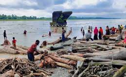 (ভিডিও) কুড়িগ্রামের কালজানি নদীতে ভেসে আসছে হাজারো গাছের গুঁড়ি