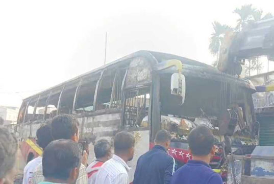(ভিডিও)গভীর রাতে বাসে আগুন, দগ্ধ হয়ে ঘুমিয়ে থাকা চালক নিহত