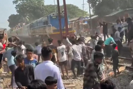 (ভিডিও)ভৈরব জেলার দাবিতে রেলপথ অবরোধ করে ট্রেনে বৃষ্টির মতো পাথর নিক্ষেপ